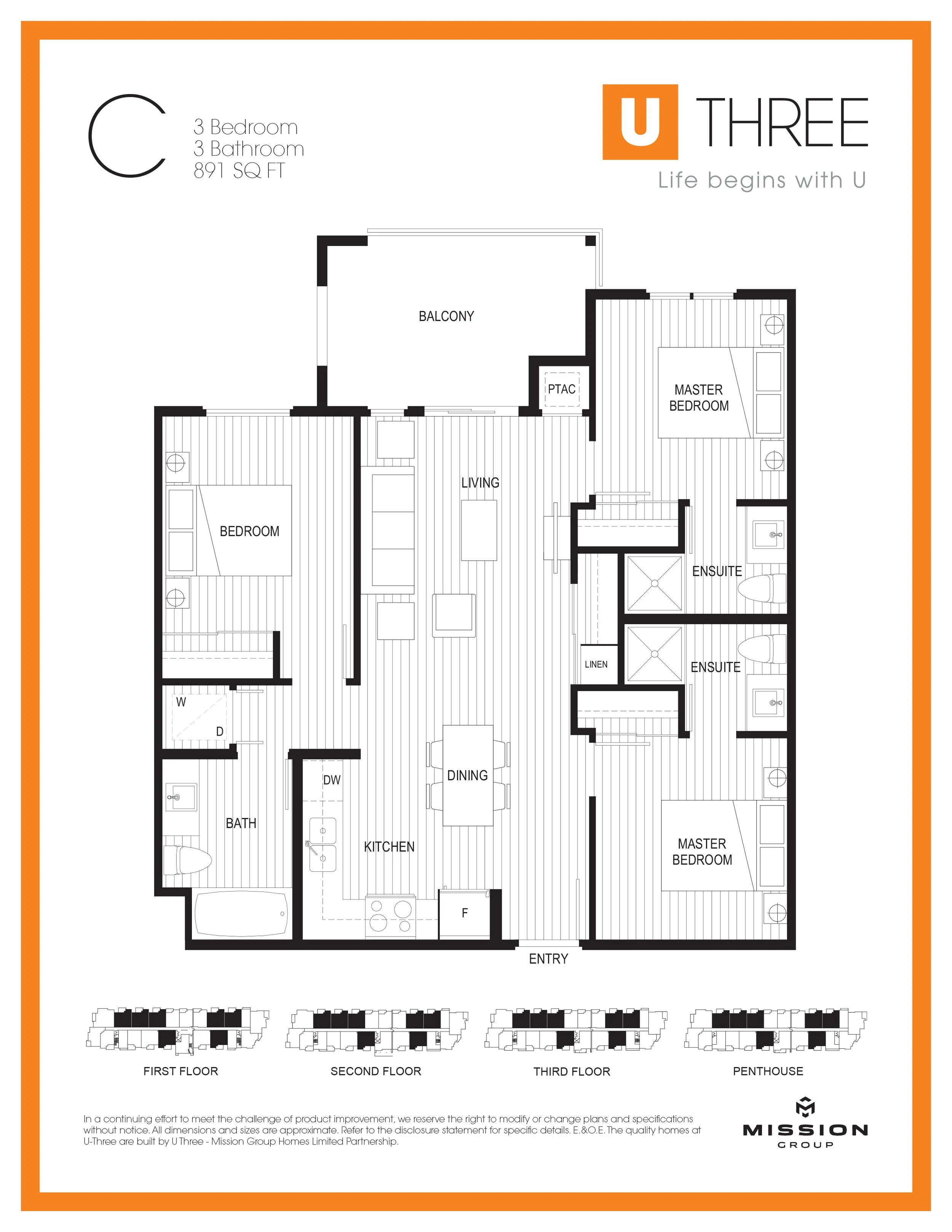 U THREE was built by Kelowna developer Mission Group and completed in 2017. The building features 87 apartment-style condo residences. Residences include 1-bedroom, 2-bedroom, and 3-bedroom layouts. Many units are investment properties, highly sought after by university students for their modern design, valley views, and most importantly - proximity to UBCO. Each residences offers patio living space and either underground parking or covered outdoor parking.